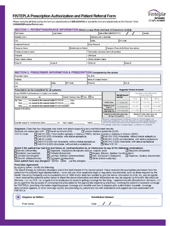 Enroll in the FINTEPLA Risk Evaluation and Mitigation Strategy (REMS) by filling out this form and submitting it to your healthcare provider.